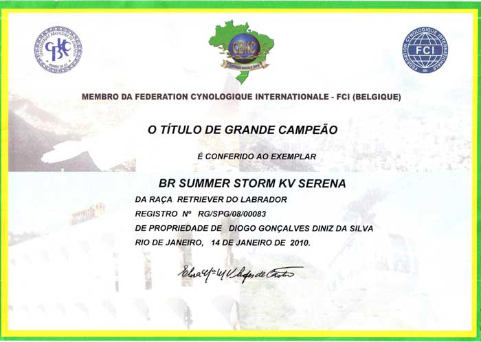 MELHOR CRIADOR DE LABRADOR DO BRASIL - 2004 - 2005 - 2006 - 2007 - 2008 - 2009