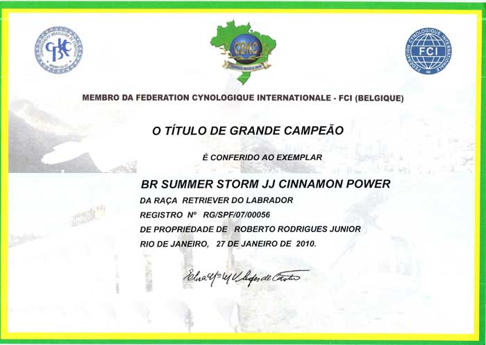 MELHOR CRIADOR DE LABRADOR DO BRASIL - 2004 - 2005 - 2006 - 2007 - 2008 - 2009