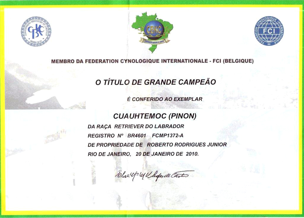 MELHOR CRIADOR DE LABRADOR DO BRASIL - 2004 - 2005 - 2006 - 2007 - 2008 - 2009 -2010