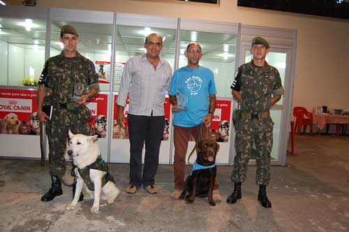 Na 1º, 2º e 3º fotos, seu proprietário Daniel, e representantes do Exercito do Brasil, ao Centro (sem Farda) o Med Veterinário - Capitão do Exercito Dr. Marco Aurélio que também é arbitro da CBKC/FCI