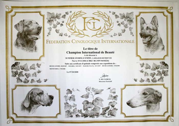 RECEBEMOS O TITULO DE CH. INTERNACIONAL DO "EMMY"