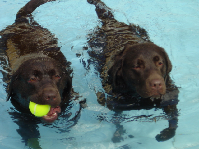 25/04/2004 - Emily e Melissa, depois da Mundial, relaxam fazendo o que elas mais gostam, relaxando na piscina, veja a foto abaixo: SUMMER STORM KENNEL LABS