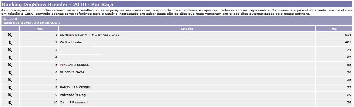 MELHOR CRIADOR DE LABRADOR DO BRASIL - 2004 - 2005 - 2006 - 2007 - 2008 - 2009 -2010