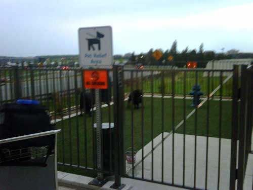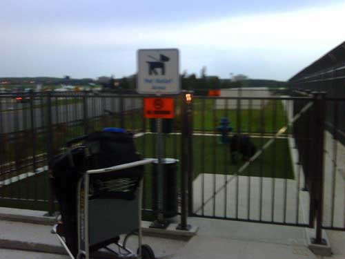 Então para ilustrar melhor como somos um povo de maioria de atrasados e ignorantes, eu fiz questão de tirar essas fotos que embora de má qualidade (blackberry) dão uma idéia de como nos EUA os animais são tratados de forma diferenciada e digna, as fotos foram feitas do lado de fora do check-inn da UNITED, a menos de 20 metros do balcão existe uma área LIMPA, e especifica para tal, onde tem até um hidrante falso... para que os cãezinhos possam se aliviar com segurança e tranqüilidade.