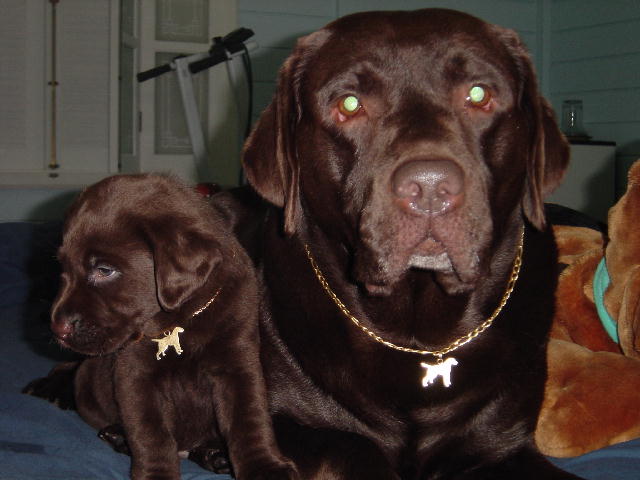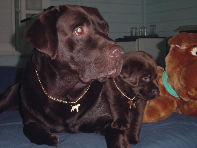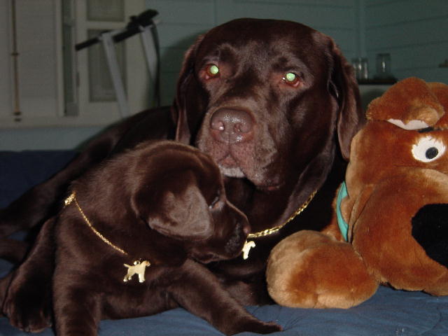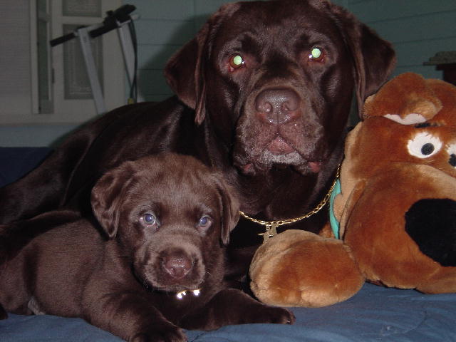 10/06/2004 - Veja fotos de JJ com um BEBE da ninhada dele com Café.