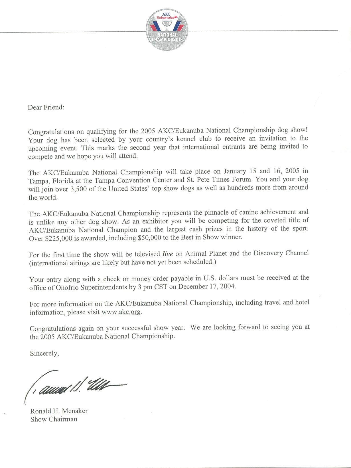 VEJA A CARTA DO AKC PARA O CANIL SUMMER STORM