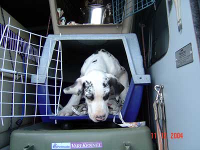 Após fazerem suas necessidades, serem aparados, banho e alimentados....nossos cães foram dormir nas suas caixas com muita água e com os ventiladores ligados no máximo.