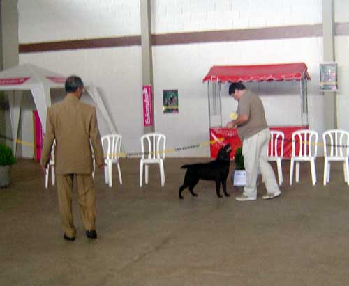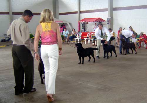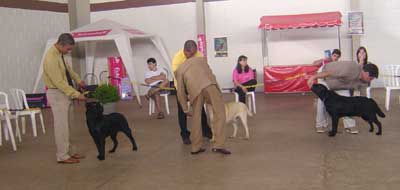 Acordamos cedo e voltamos ao parque de exposições, e as exposições começaram às 8:30. No total compareceram 240 cães e 12 labradores.