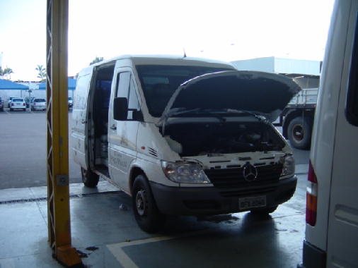 A Sprinter sendo revisada..., para continuação da viagem.