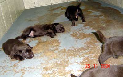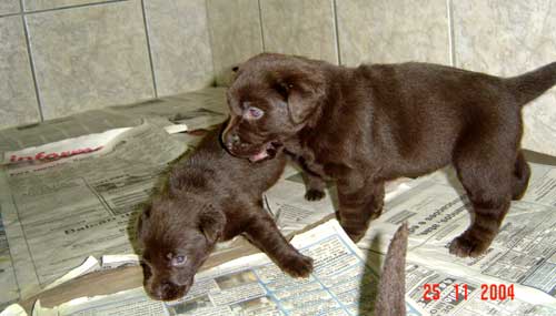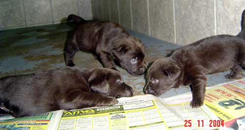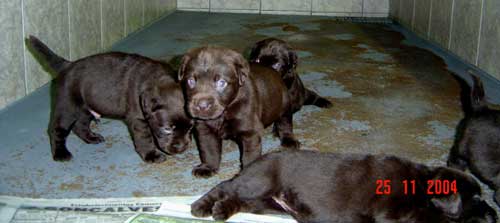 26-11-2004 - Nasceram em 09-11-2004 5 filhotes, todos são chocolates, sendo 3 Machos e 2 Fêmeas.