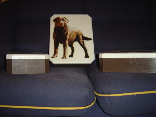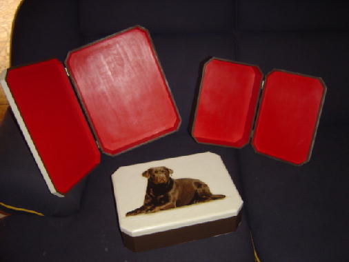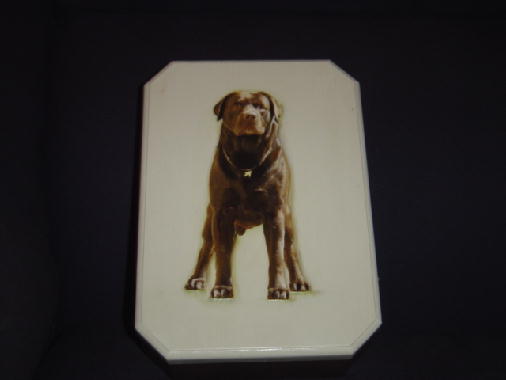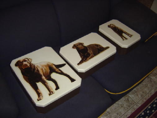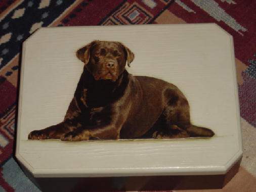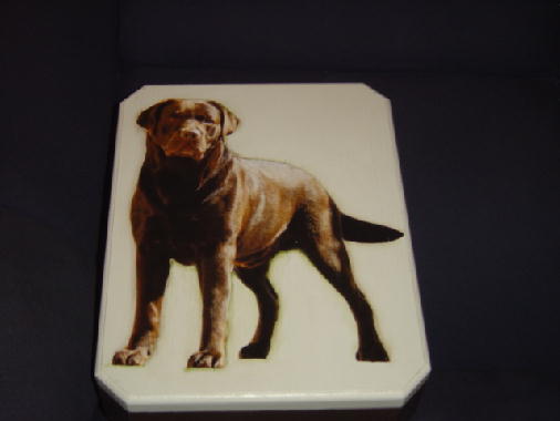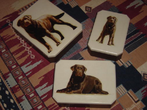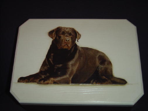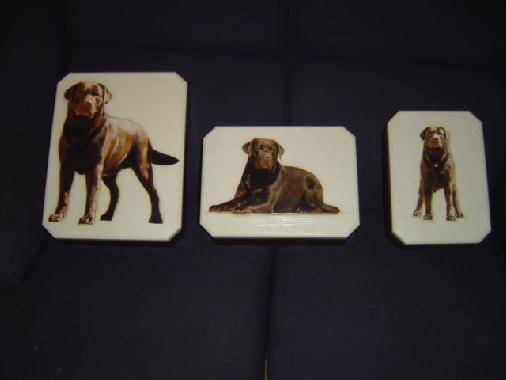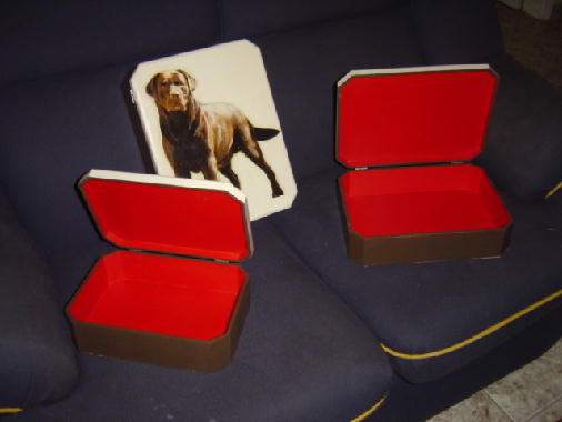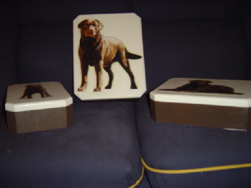 ...Aqui vão algumas fotos de caixas feitas com uma técnica chamada "Decoupage", estão sendo feitas pela Cláudia e tem como foto o labrador "JJ", se alguém se interessar favor entrar em contato.