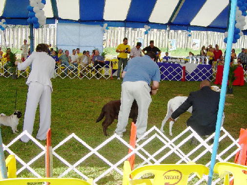 Quando começou, ficava difícil até de acompanhar, porque tínhamos que ficar de olho nos cães que estavam conosco. Acontece tudo muito rápido, mal dá para ver a direção em que o juiz aponta. Para minha tristeza, a Emily não levou Melhor Fêmea, mas o Roberto ficou com praticamente todas as classes. Na hora de buscar os machos, uma correria só.