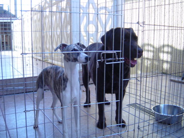 Ela e pequeninina.... seu nome é GUILHERMINA...e da raça WHIPPET, e passa a integrar nosso plantel... vai ser no futura nossa PERSONAL TRAINER DOG..., pois vai por os labs pra correrem MUITO, NA FOTO COM A SUA melhor amiga MELISSA....