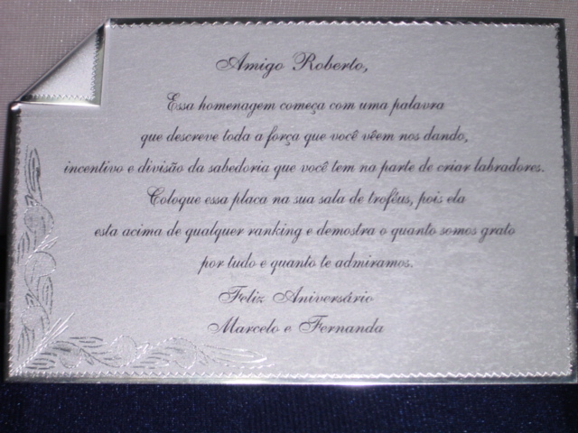 Mas o melhor ainda estava por vir... ao subir com os cães depois da ultima pista, o acampamento parecia um bufê... bexigas.., Bolo... cães com chapeuzinho... uma bela festa!!!, onde além do carinho dos amigos ganhamos a placa abaixo! não h;a palavras para descrever este momento.