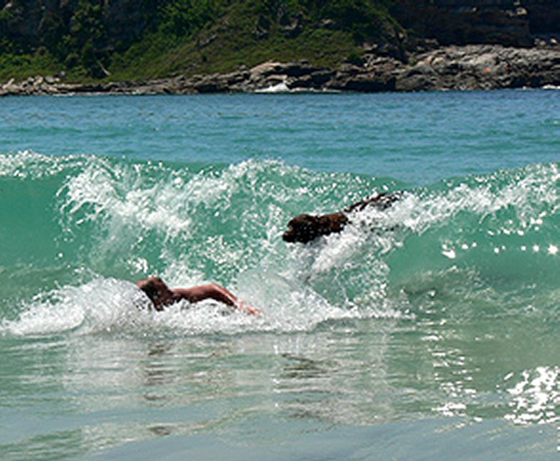 Na foto a labradora do Sra. Claudia Marroquim, pega uns "Jacarés" só para relaxar em praia no Rio de Janeiro!!